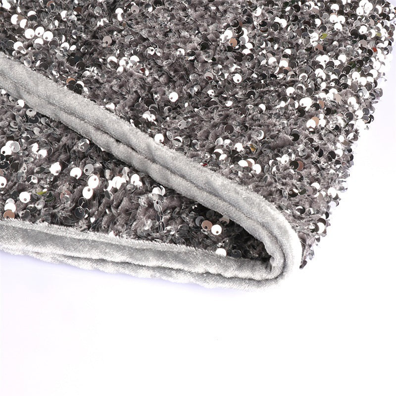 Close-up of Christmas Sequins Decoration Tree Girth Sequin Tree Skirt showing silver gray sequins for rustic and elegant decor.